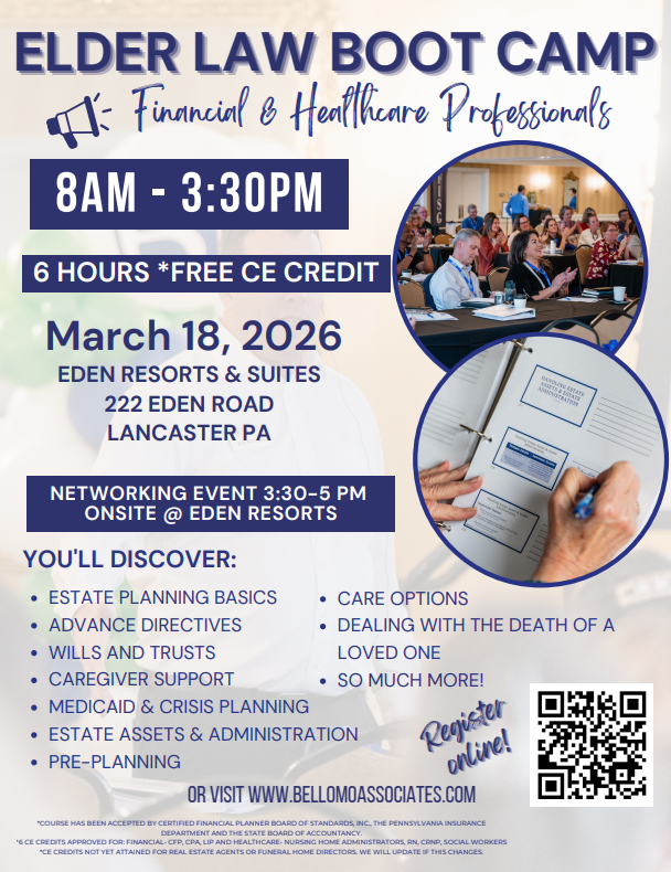 The Bellomo & Associates Elder Law Boot Camp is a hands-on learning experience designed for professionals who want to sharpen their skills and better serve their clients.