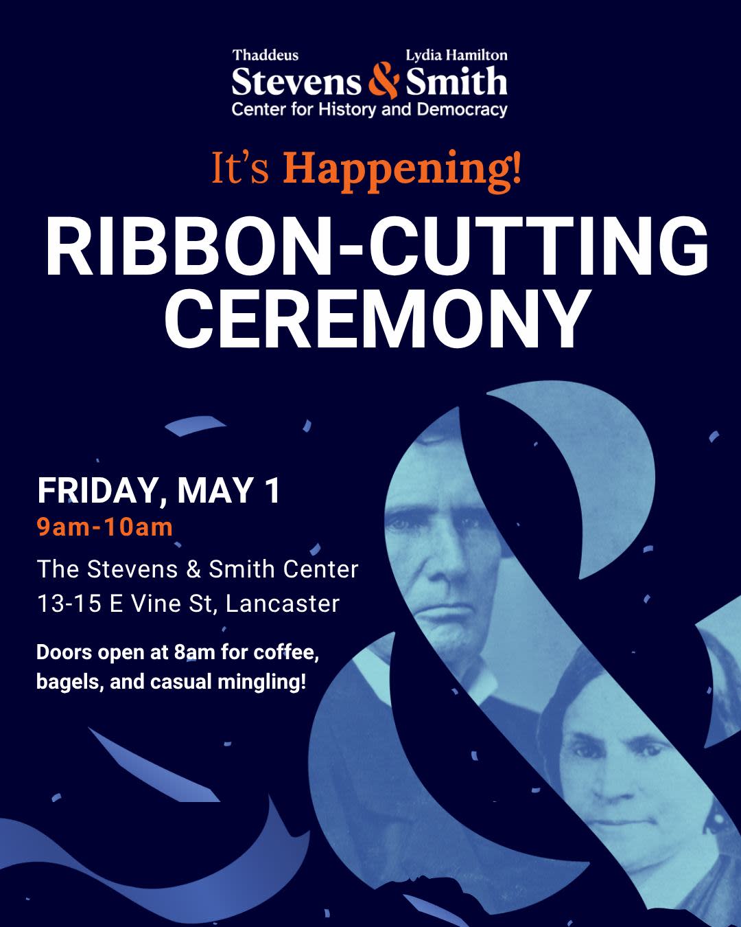 Opening on May 1, 2026, in the heart of downtown Lancaster, the restored historic properties once owned by Thaddeus Stevens and his partner Lydia Hamilton Smith are re-envisioned as a state-of-the-art museum and education space. Innovative exhibits, created with leading historians and designers, confront slavery, freedom, and the ongoing fight for equality in America. LancasterHistory—together with many collaborative partners—are eager to welcome the public for this once-in-a-generation moment for our community, a celebration as bold as the history it honors!