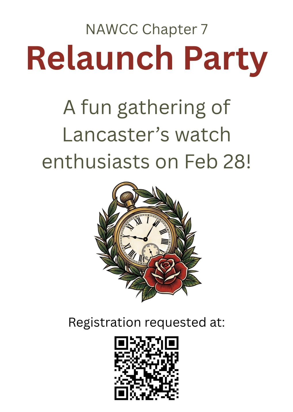 Join us for the inaugural meeting of NAWCC Chapter 7 as we celebrate the relaunch of the chapter and look ahead to its future. This event will be free to the public and family friendly!