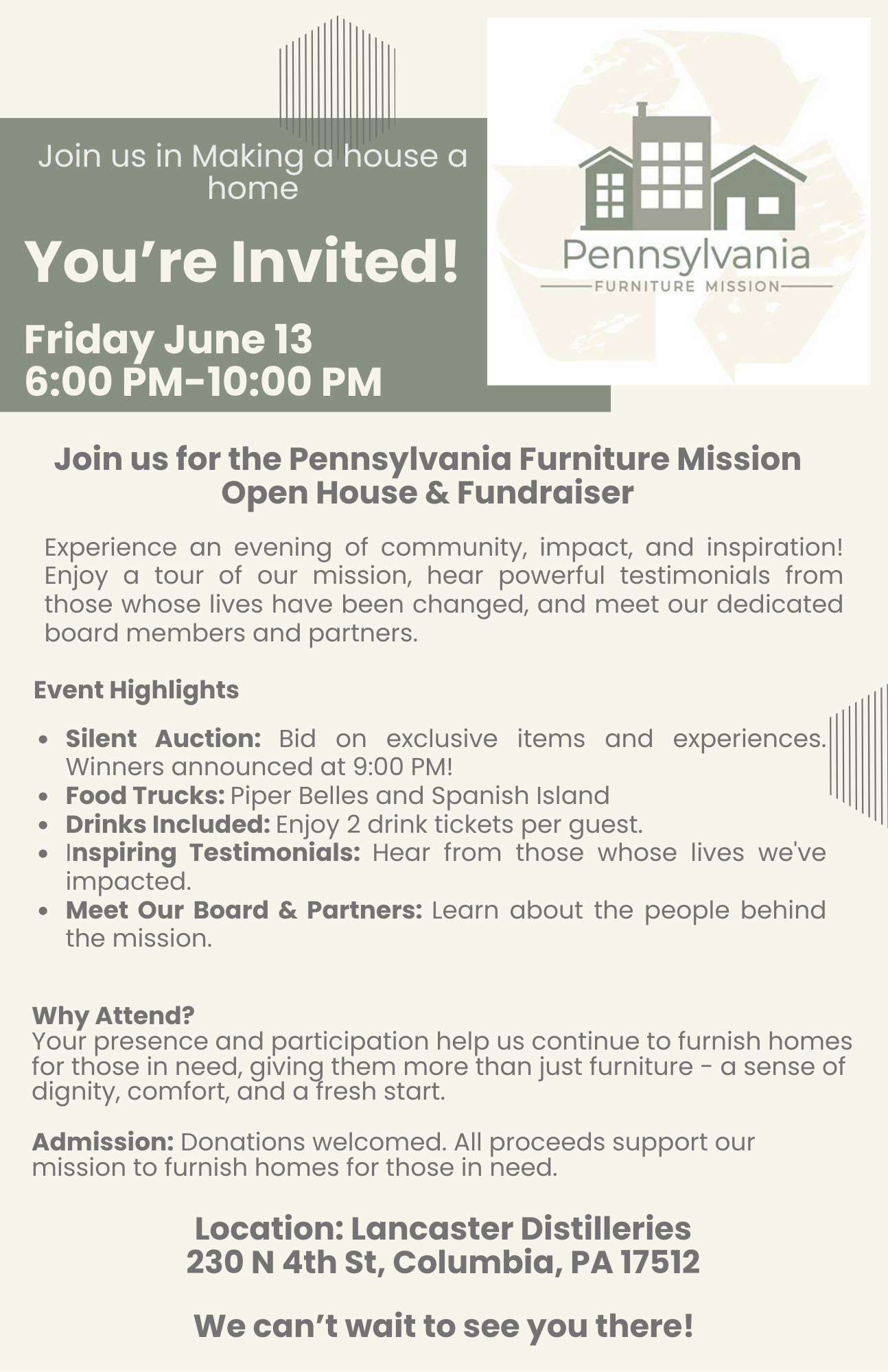 PA Furniture Mission - Open House/Fundraiser
