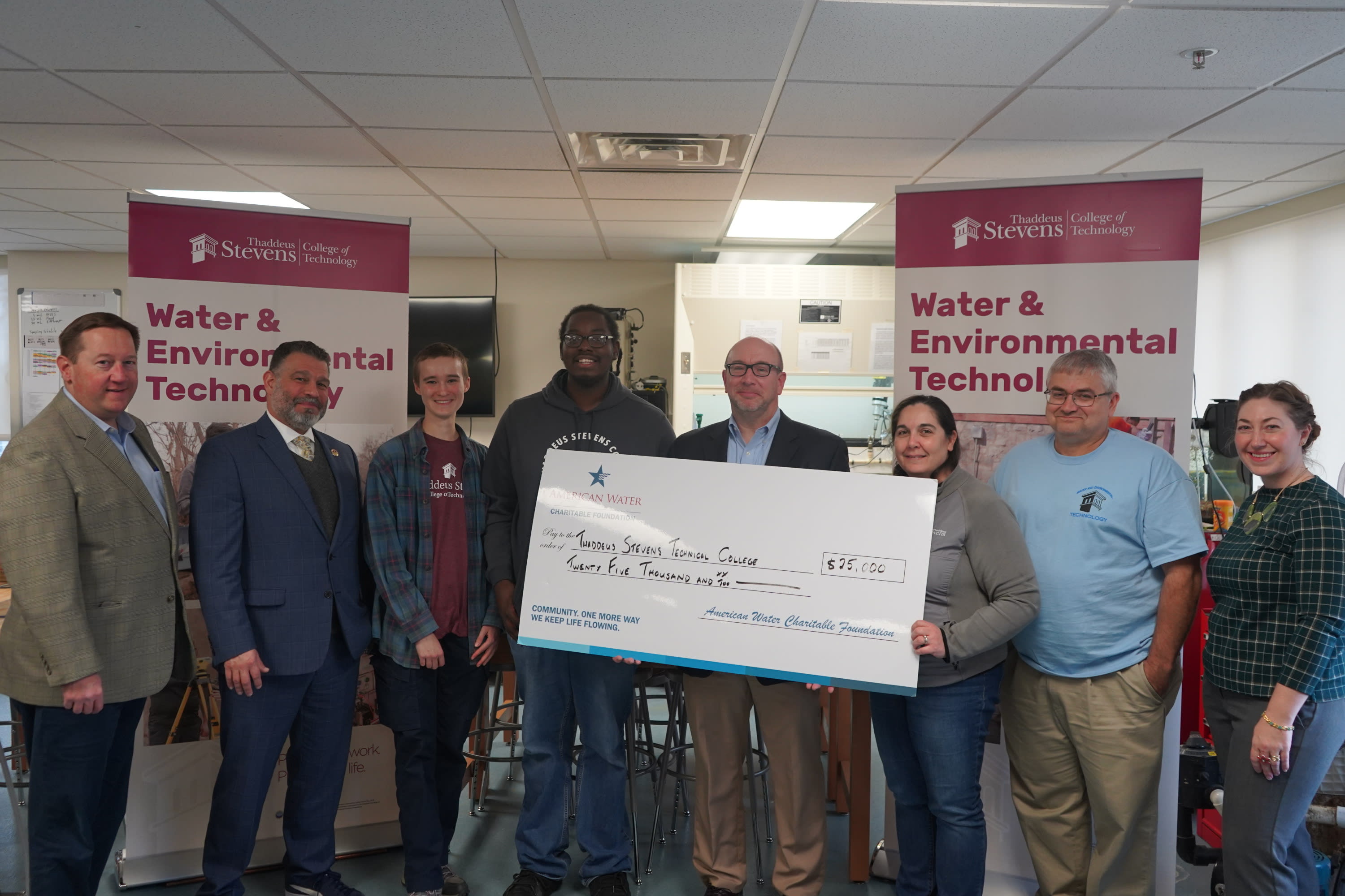 (Lancaster, PA) — Leadership from Pennsylvania American Water, the state’s largest water and wastewater utility, this week formally presented a check for $25,000 to Thaddeus Stevens College of Technology on behalf of the American Water Charitable Foundation. The funding is part of the foundation’s Workforce Readiness and STEM Education Grant Program and provides scholarships and equipment in the College’s Water and Environmental Technology associate degree program.